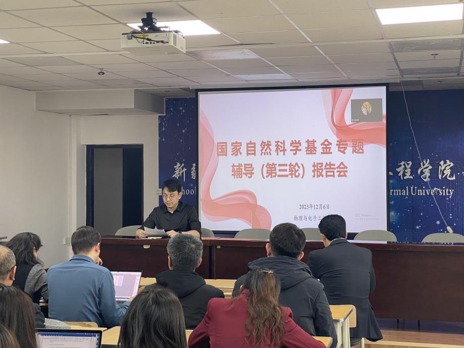 12月6日,beat365平台官方网站通过线上线下相结合的方式,组织召开2024年度国家自然科学基金申报辅导(第三轮)报告会。报告由华南师范大学物理学院教授,国务院学位委员会学科评议组成员,国家自然科学基金委数理学部会评专家赵纪军教授主讲,会议由学术院长程振洲主持,学院全体教师听取报告。