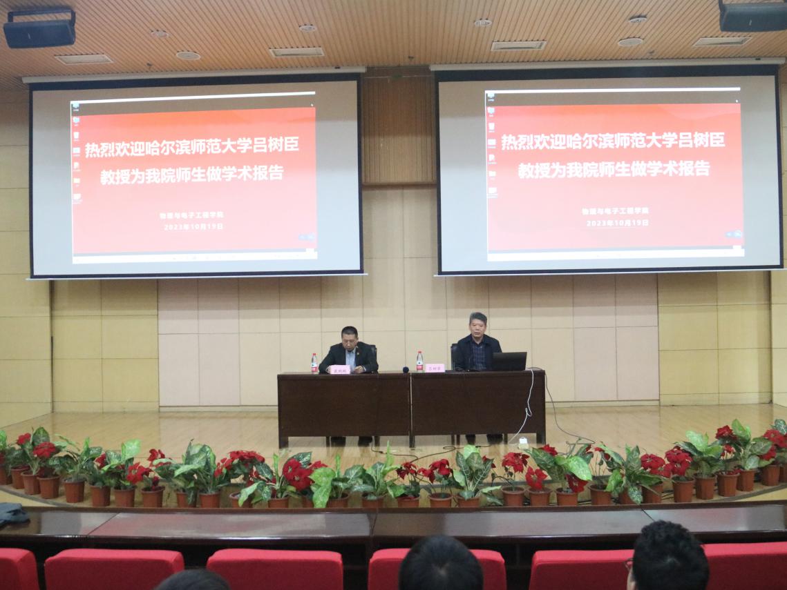 10月19日,哈尔滨师范大学吕树臣教授应我院邀请,在昆仑校区国教楼三楼会议室作了题为“稀土掺杂钨(钼)酸盐基纳米红色荧光粉的制备和发光性质的研究”的学术报告。报告由beat365平台官方网站副院长戴鹏鹏教授主持。学院领导及师生共计200余人听取了报告。
