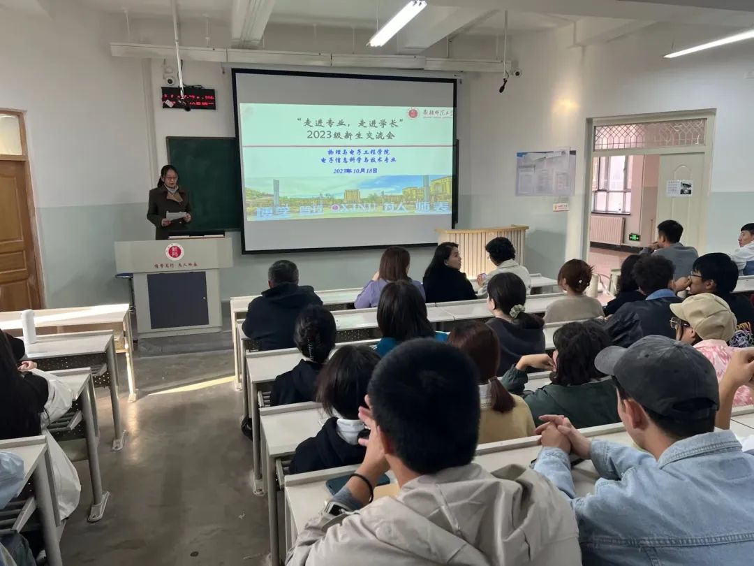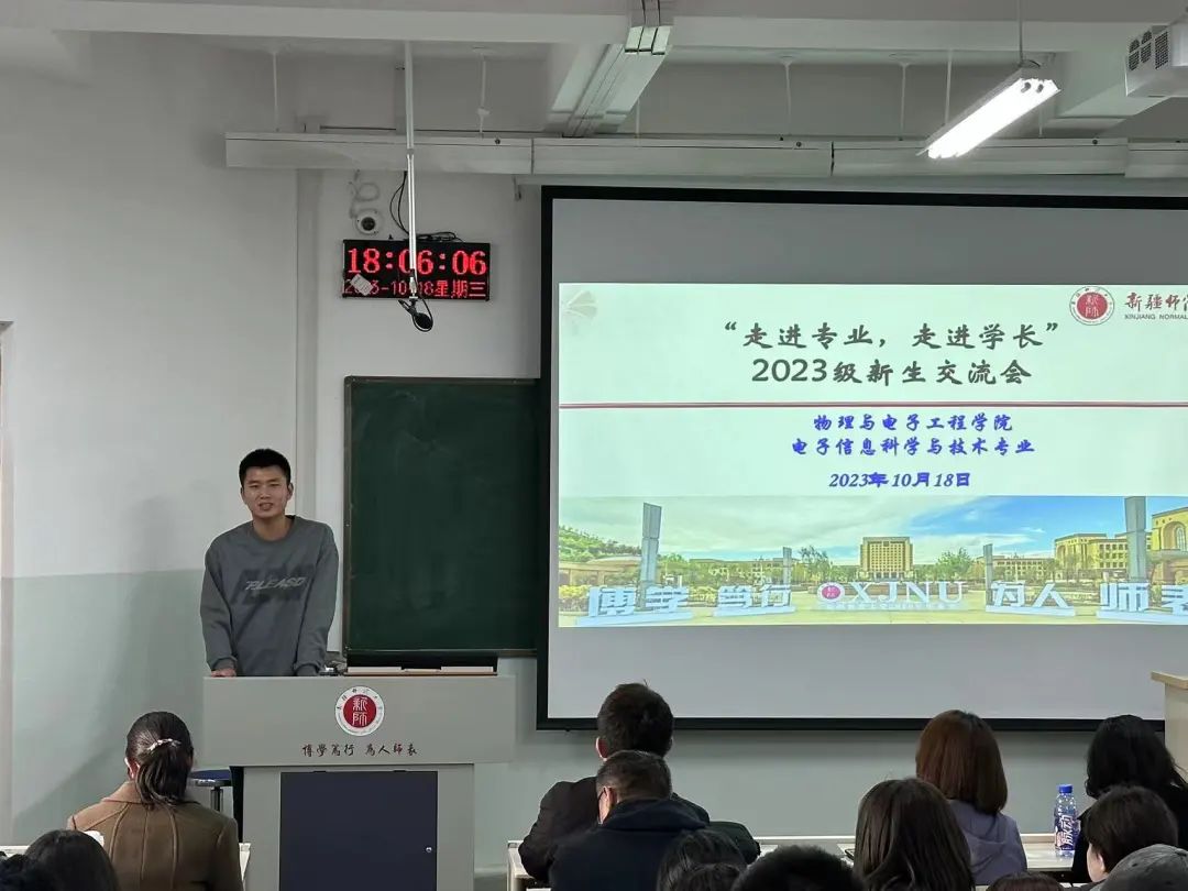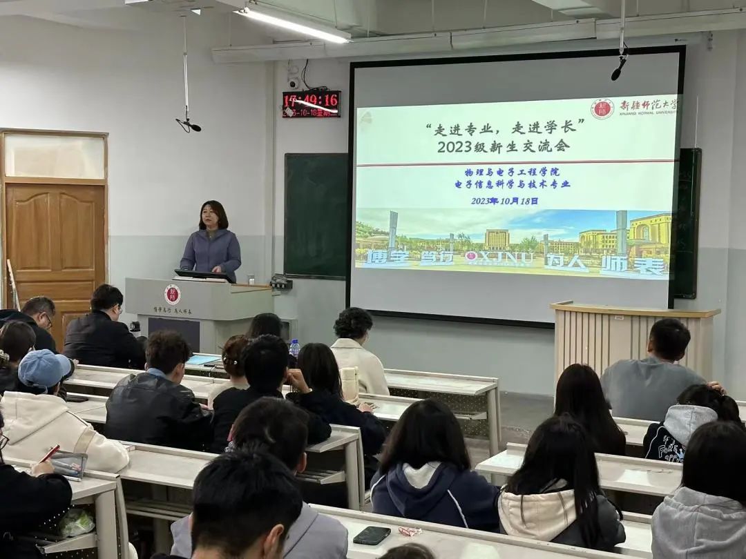 根据学院新生入学教育实施方案要求,为帮助新生对专业有更加深入的了解和认识,明确学习目标、熟悉专业使命、掌握学习方法,从而对学习生活做好良好规划,尽早进入学习状态。beat365平台官方网站于2023年10月18日在合堂楼301、合堂楼501教室分专业举行了2023级新生“走进专业、走近学长”学习交流会。物理系会议由系主任帕尔哈提江·吐尔孙主持,电子系会议由系主任赵忠华主持,教研室主任、新生班学业班主任、各专业高年级优秀学生代表及2023级全体新生参加会议。