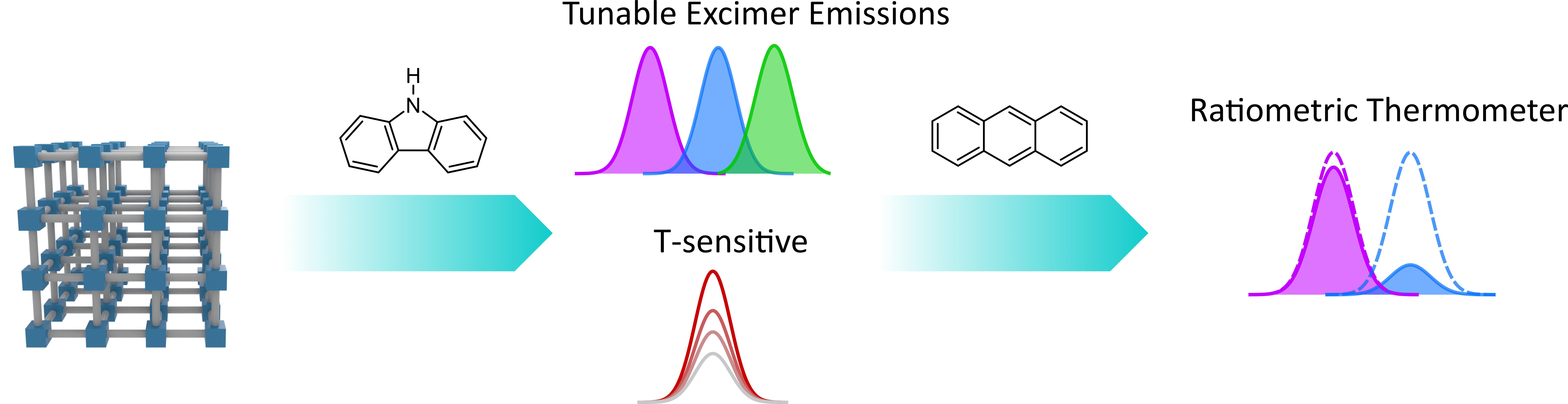 金属-有机框架材料(MOFs)的结构和功能非常丰富,通过合理设计客体发光材料和主体MOFs,可以实现客体的发光可调和刺激响应发光。在染料@MOFs复合材料中,受限的染料分子的发光为典型激基缔合物发射。本文基于染料激基复合物的发光特性研究了染料@MOFs复合材料的发光可调性质,探索其在室温附近的温度响应特性,并对比率温度传感性质进行了定量分析。本研究为全光谱和比率温度传感材料的开发提供了一种简单、有效的新手段。