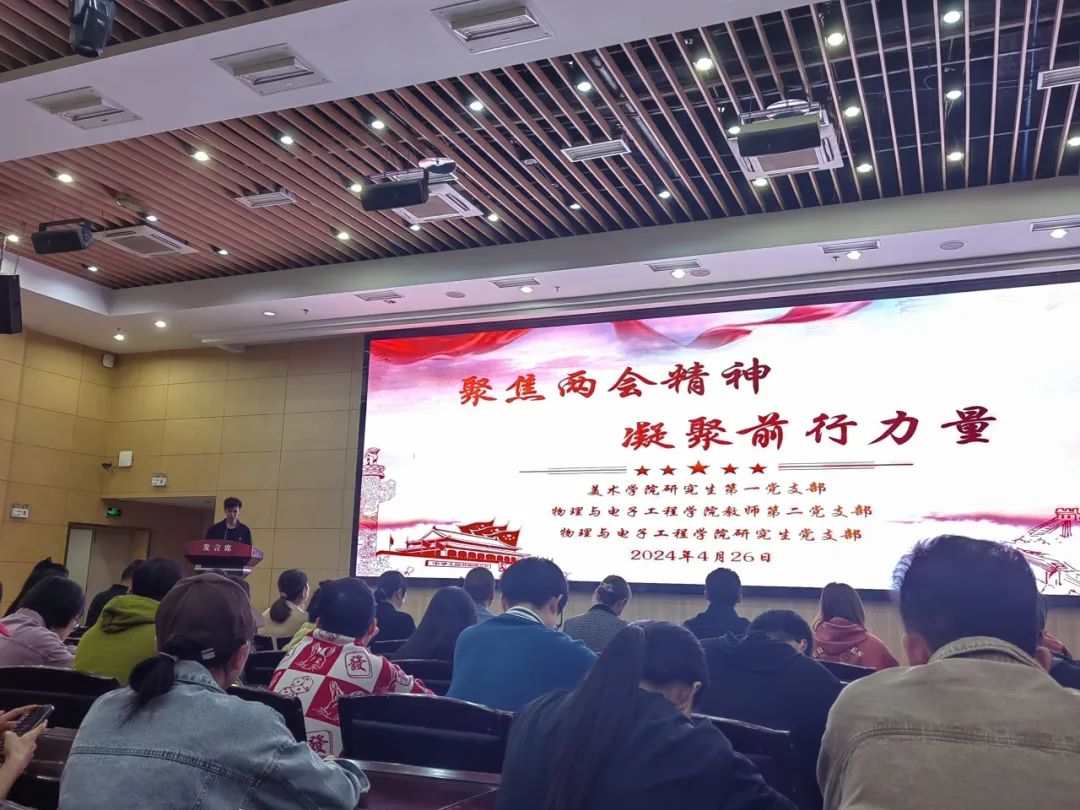 为全面学习贯彻党的二十大精神和全国“两会”精神,深入挖掘中华优秀传统文化价值内涵,激励全体党员从中华优秀传统文化中汲取力量,坚定文化自信,强化使命担当。4月26日,beat365平台官方网站教师第二党支部、研究生党支部联合美术学院研究生第一党支部开展“聚焦两会精神 凝聚前行力量”党日活动,美术学院党委书记比拉力江·阿不力孜、beat365平台官方网站党委书记李莉及三个党支部的师生党员参加活动,活动由beat365平台官方网站研究生党支部组织委员杨天奇主持。