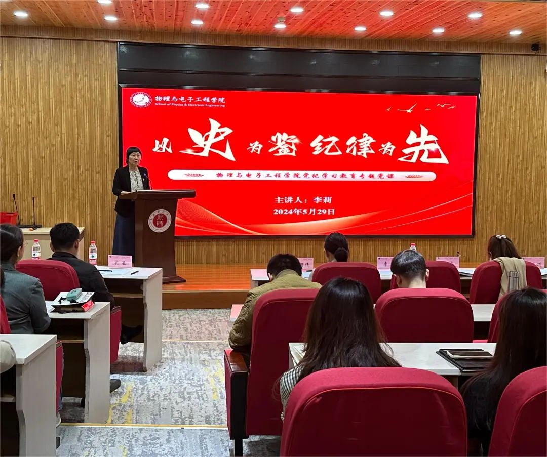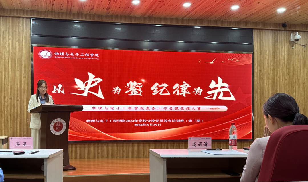 为推动党纪学习教育走深走实,增强党纪学习教育的针对性、生动性、思想性,充分挖掘党史和党纪中的红色故事、名家事迹、纪律印记和廉洁元素,切实提升全院师生党员的理论素养和政治自觉,5月29日,beat365平台官方网站在文史楼二楼议课厅开展了“以史为鉴、纪律为先”党务工作者微党课大赛。比赛评委由党委书记李莉、党委副书记、院长向梅、学术院长程振洲、党委副书记、纪委书记买星和地理科学与旅游学院党委副书记、纪委书记高丽倩担任。共有12名党务工作者参加比赛,学院全体师生党员在现场观摩。