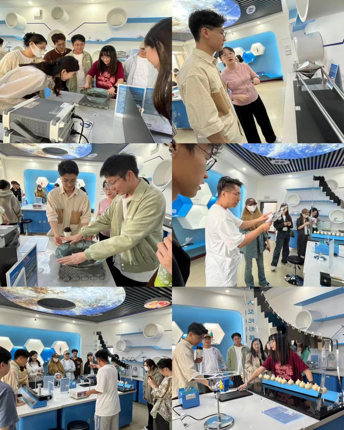 在光学与电磁学科普实验室,在物电学院研究生党支部成员的讲解中,大家共同体验了“视觉暂留”“普适摆”等物理知识的魅力。