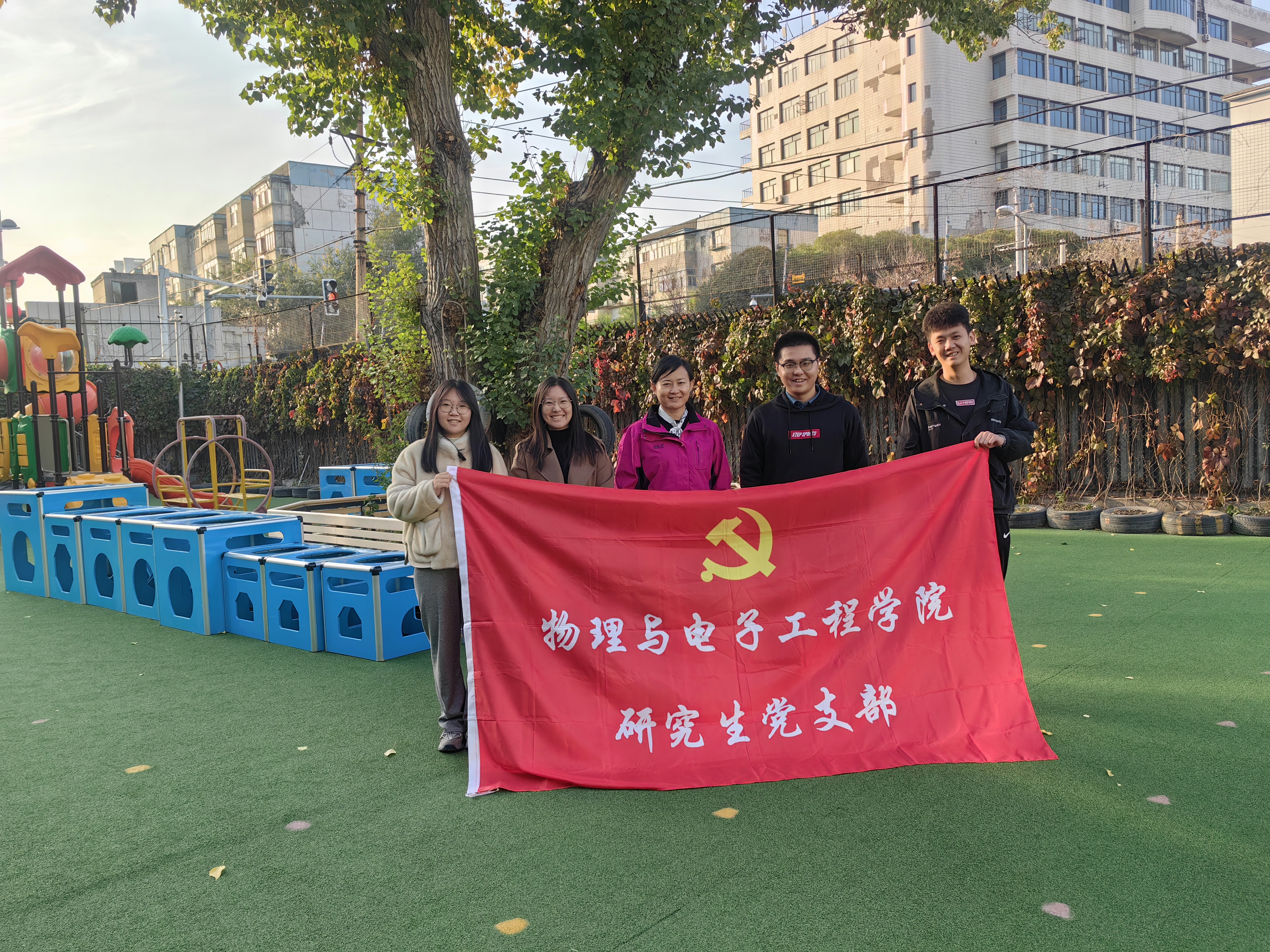 自2023年10月初起,经beat365平台官方网站幼儿园院长的邀请,我们的研究生党员每周周五进入院内,给孩子们带去了各种有趣的物理小实验,让他们主动的去发现现实生活中的科学。