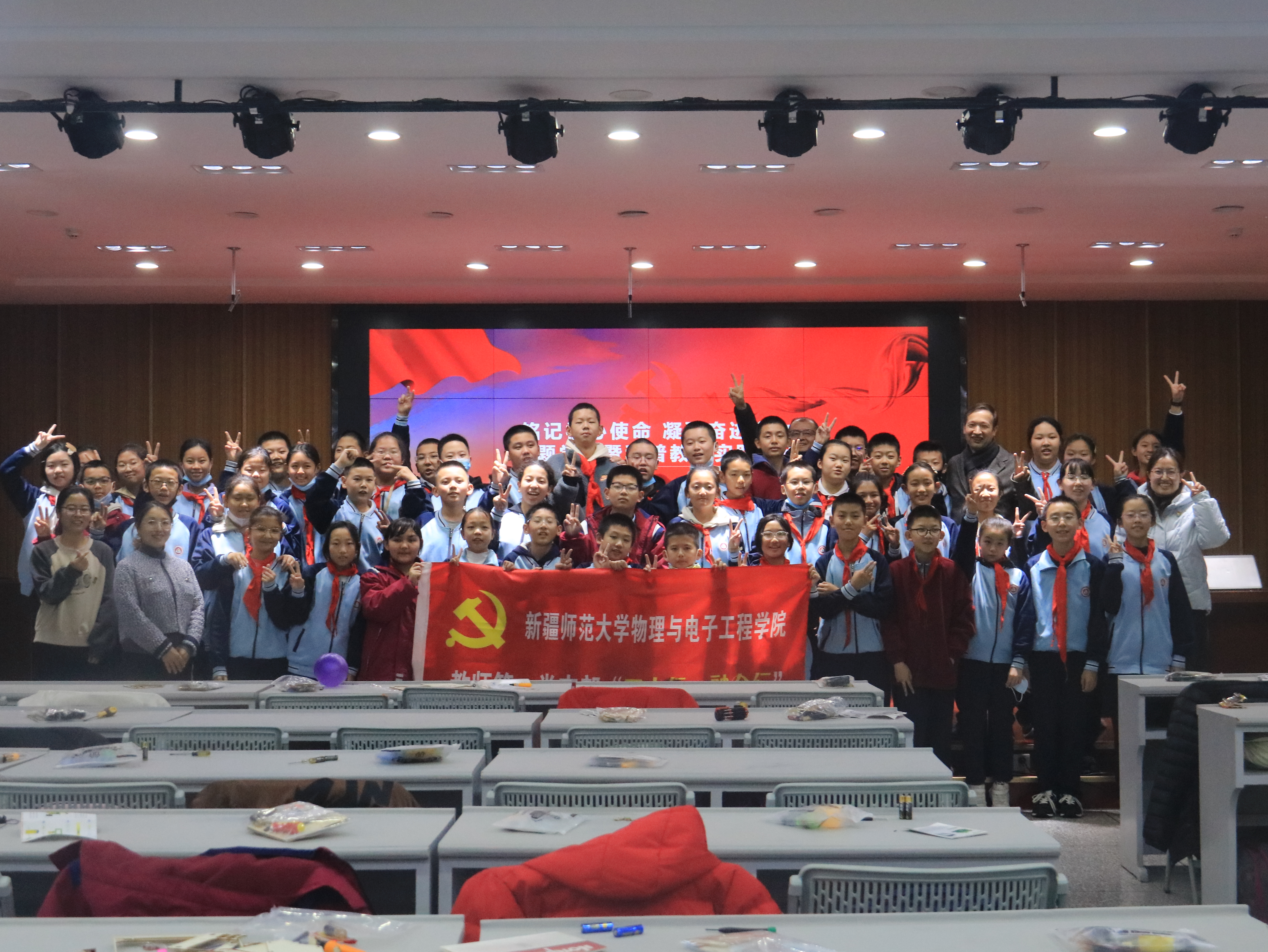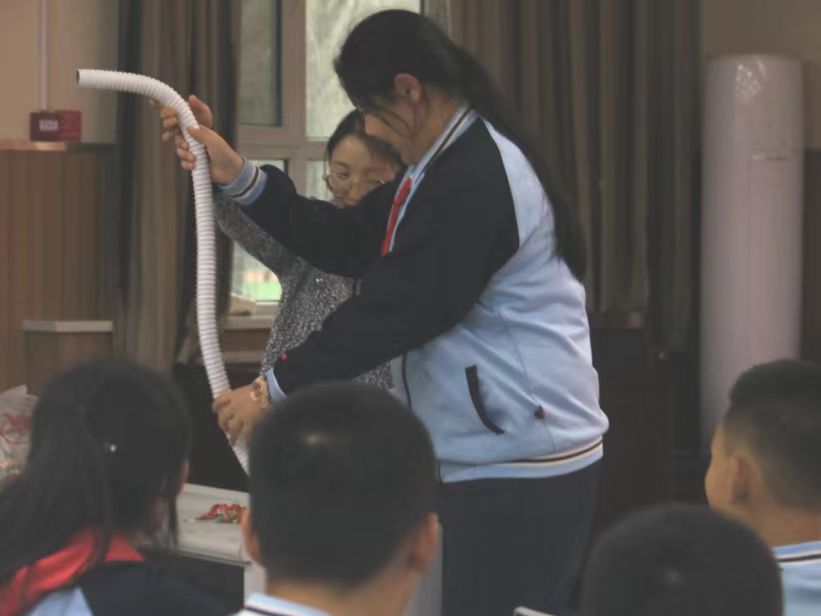 最后,教师第一党支部党员教师与六年级的孩子们共同完成了一系列生动有趣的科学小实验。学院实验中心主任邹艳波老师为孩子们演示“看不见的力”实验,并讲解其蕴含的物理原理。麦麦提依明老师和孩子们分享神奇摩擦起电实验,孩子兴高采烈,饶有兴趣的积极参与。学院还为每个孩子赠送科学实验套盒,鼓励孩子们能通过自己的巧手来完成属于自己的作品。