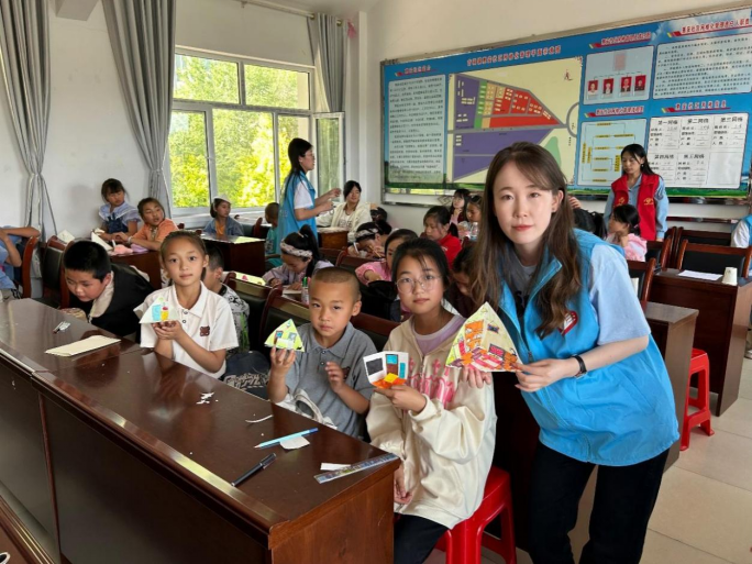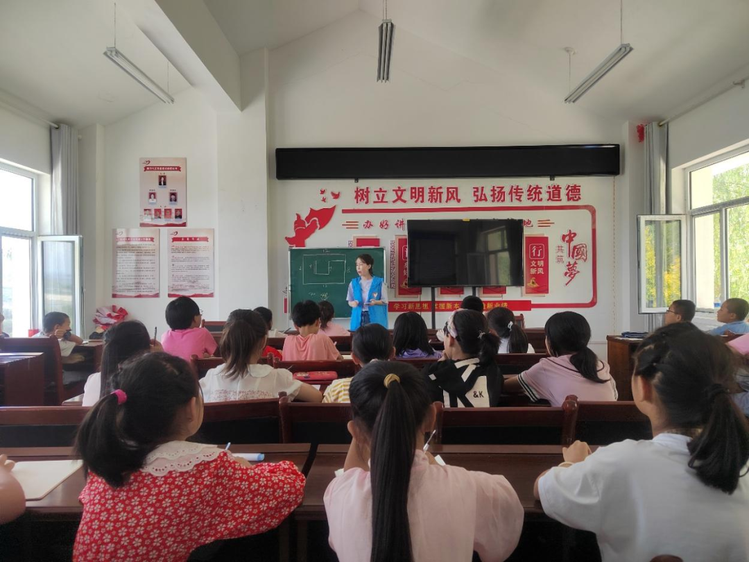 赵燕燕同学说:“在支教中,虽辛苦,但很幸福;虽短暂,却很充实。原本以为时间会过的很慢,但当我遇见这群可爱的孩子们,看到他们的笑颜,看到他们一天天的进步,才惊觉时间如白驹过隙。课堂上,我组织趣味数学课,孩子们听得入迷;我科普物理小知识,孩子们眼中有光,心中有梦。我要积极参加支教活动,为乡村振兴贡献青春力量,用小小萤火,照亮童心,让孩子们的假期七彩斑斓。”