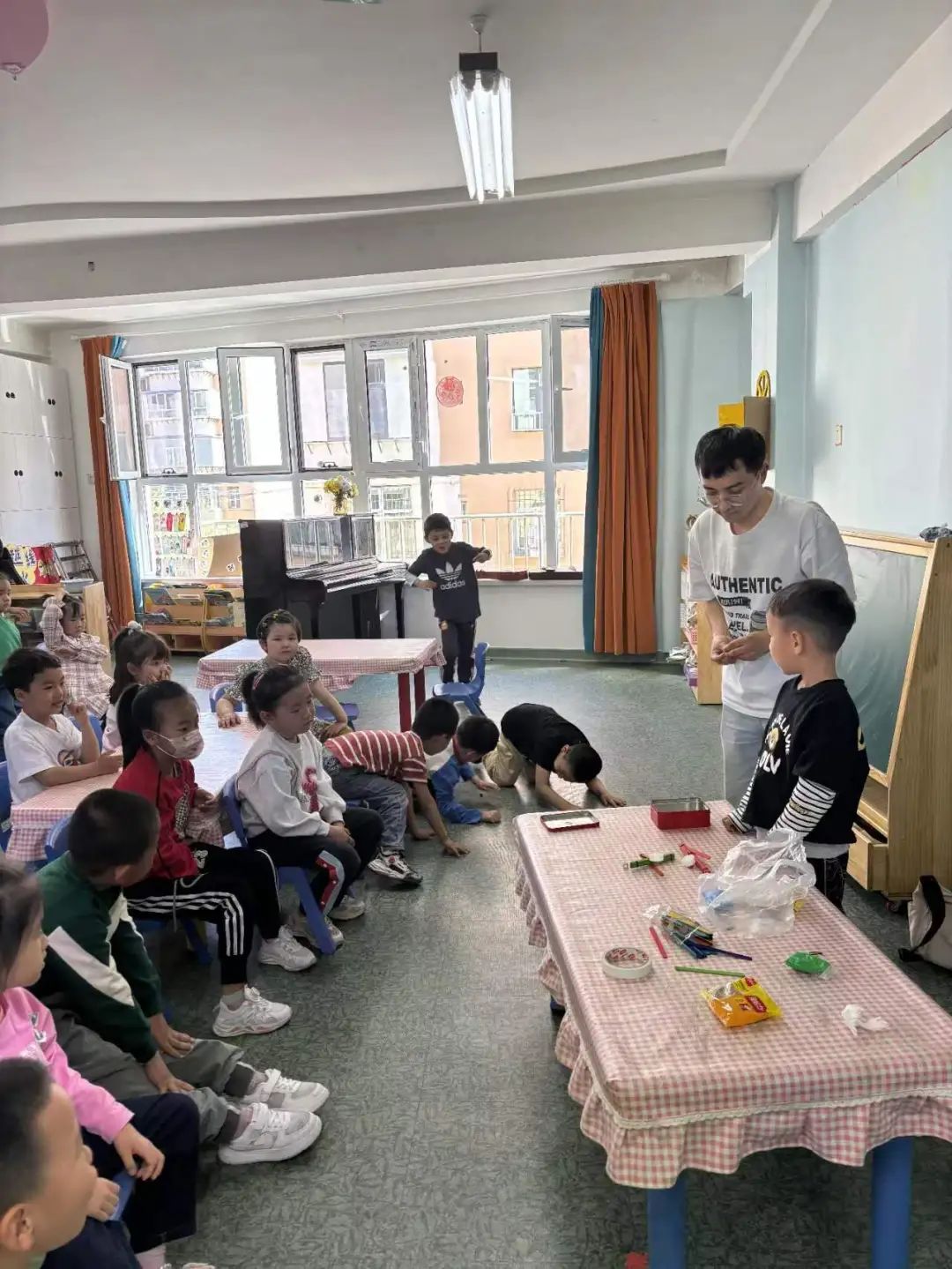 吕浪浪同志带领小朋友进行实验