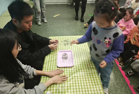 李艺同志表示:参与幼儿园的科学小实验活动让我感受到科学教育的魅力。作为研究生,我了解到理论知识的重要性,但在活动中看到孩子们通过实践理解科学原理时,我才明白真正的学习是在体验中获得的。比如,当孩子们通过简单的浮沉实验观察到物体的不同表现时,他们的眼睛里流露出的惊讶和兴奋,深深触动了我。这种直观的学习方式让我更加意识到培养孩子们探索精神的重要性,未来我也希望能够在科学教育领域贡献自己的力量。