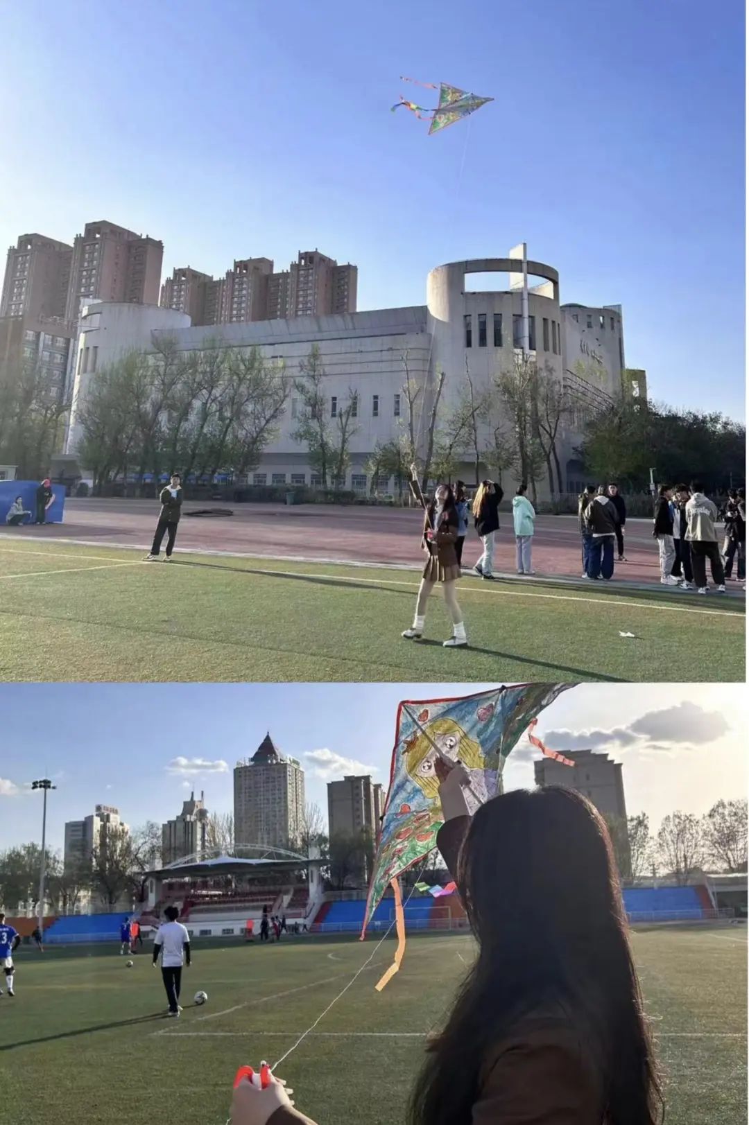 在放飞风筝的过程中,大家手持风筝线,调整角度,迎着春日微风的吹拂恣意奔跑,构成了一幅“春风正酣纸鸢飞,笑容满面人尽欢”的美丽画卷。