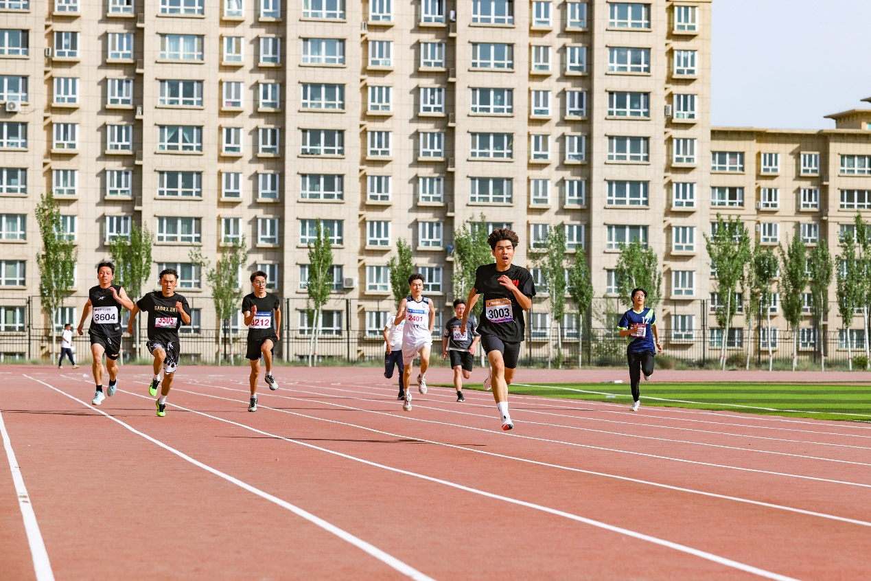 疾风驰骋赛道上,短跑健儿展锋芒。