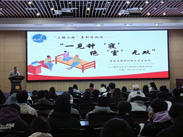 为促进我院学风建设,发挥社区育人功效,进一步深化我院“三强班级”“三好宿舍”建设达标与评优活动,beat365平台官方网站于2023年12月8日晚在国际教育大厦一楼组织召开第四届“一见钟‘寝’,绝‘室’无双”寝室装饰设计评比大赛。学院党委副书记、纪委书记买星,学工办主任徐丽屏,辅导员木力扎提·马合木提、宁静、郑叶,分团委副书记赵燕燕担任评委,2023级200余名同学共同参与此次活动。
