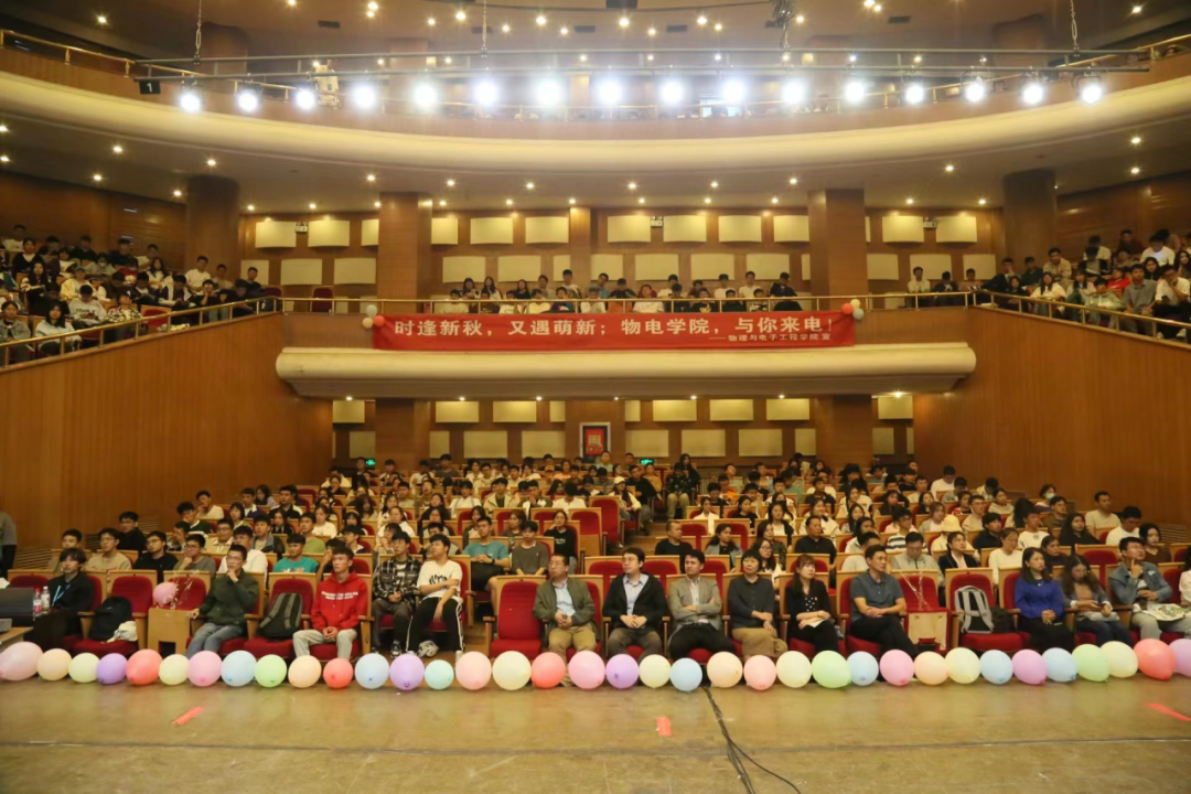 在硕果飘香的金秋时节,物电学院迎来了朝气蓬勃的2023级新生们,师生见面会在雄壮的国歌声中拉开序幕。为表达对新同学们的热烈欢迎,学院全体辅导员、2023级班主任、2023级青葵助励小导师依次为新同学们送上祝福,物理系主任帕尔哈提江·吐尔孙老师、电子系韩振华老师分别从专业建设、机构设置、人才培养、科学研究、学科方向、导师队伍、就业前景等方面为2023级新生做了物理学专业、电子信息科学与技术专业的详细介绍。最后,学院党委副书记、院长向梅对全体2023级新生寄语,她希望同学们,一要打牢学业根基,在“厚德明志格物创新”中把握人生航向;二要锻造坚韧不拔的毅力,保持人生定力;三要牢记自己的初心和坚守,加强自我约束、自我管理、诚实守信,树立积极向上的人生态度。牢记习近平总书记的嘱托“让青春在全面建设社会主义现代化国家的火热实践中绽放绚丽之花。”