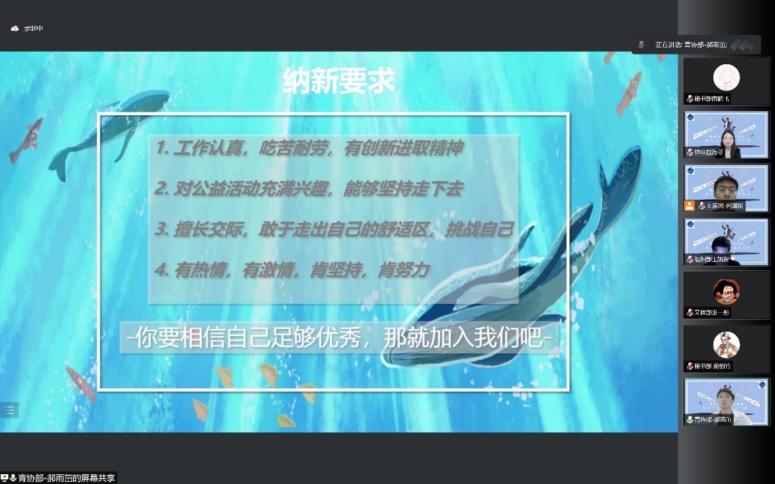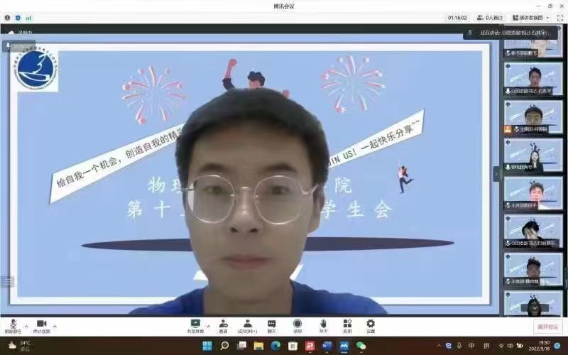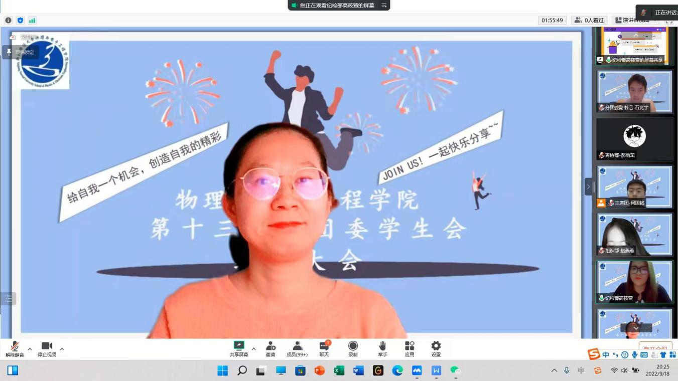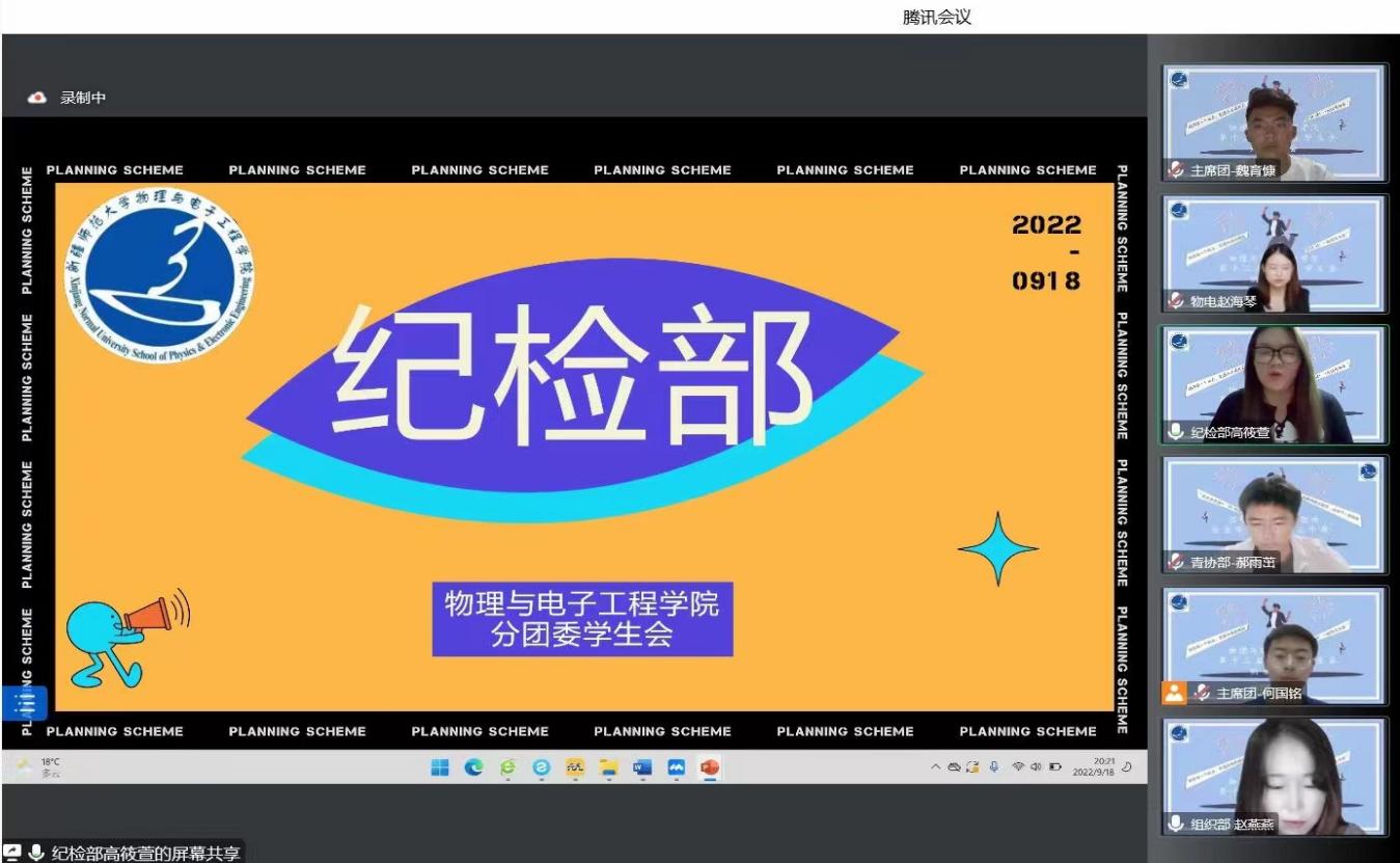 为向2022级新生提供锻炼综合能力的平台,帮助新生做好大学生活规划,9月18日,beat365平台官方网站分团委学生会组织召开了学生会预备成员纳新答疑会,会议以腾讯会议的形式召开。学院学工办全体老师、第十三届分团委学生会全体成员及2022级部分新生共计200余人参会。会议由学生会主席团成员何国铭同学主持。