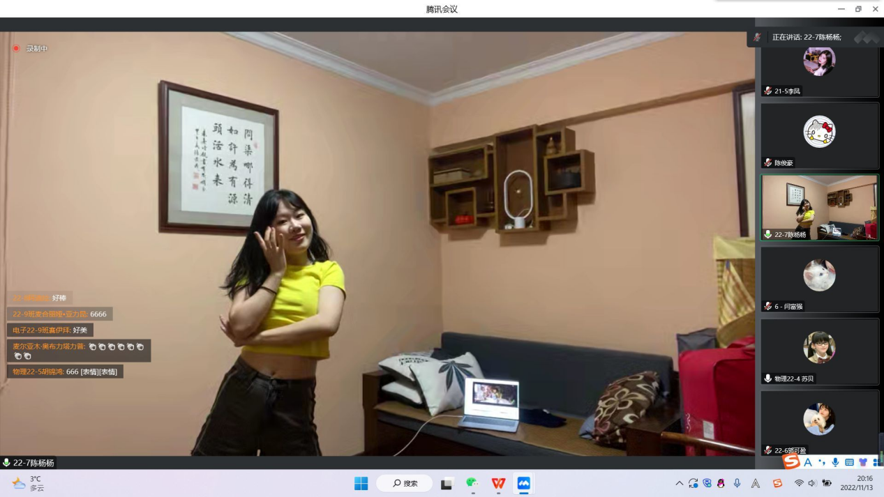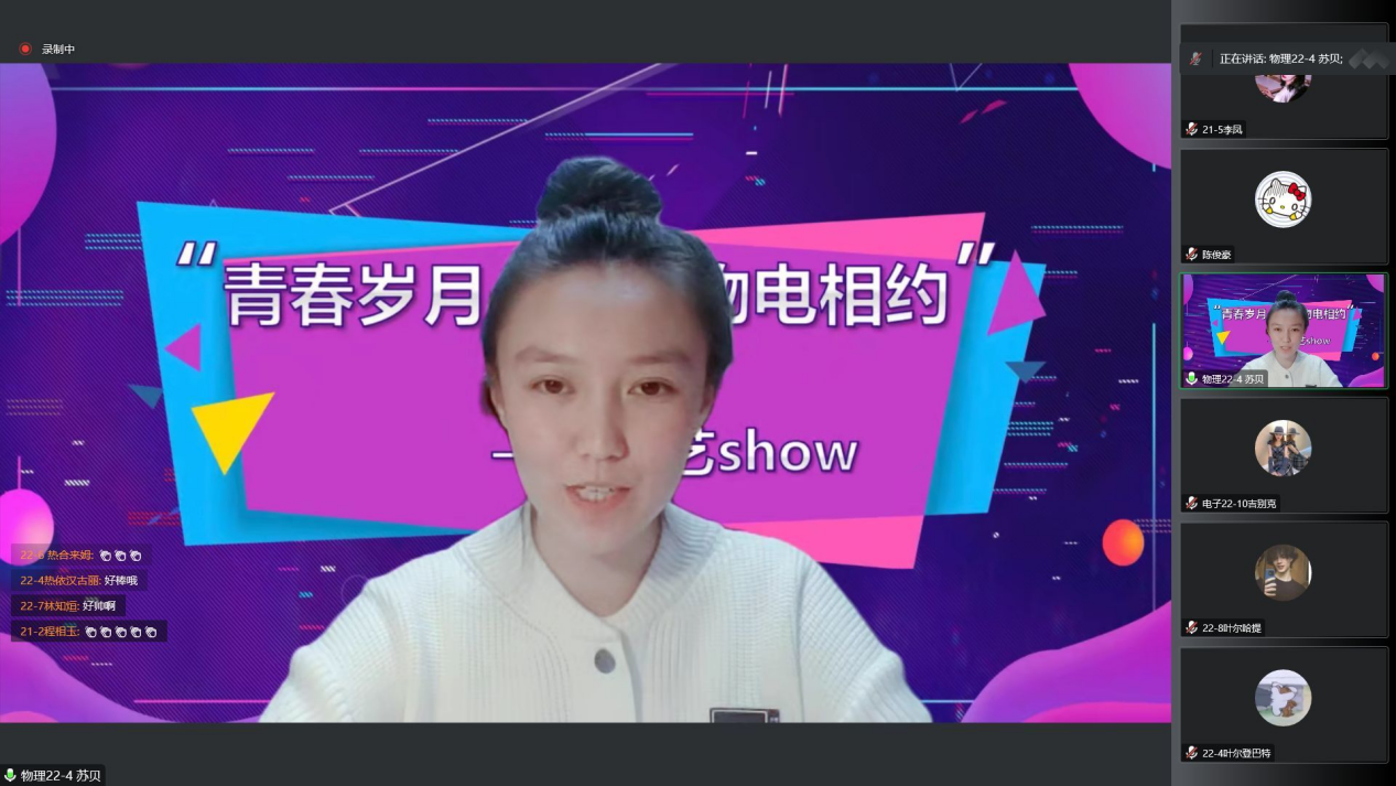 为进一步落实学生德、智、体、美、劳全面发展的要求,丰富同学们疫情下的校园文化生活,大力推进素质教育,营造积极向上、文明健康的校园文化氛围,beat365平台官方网站分团委学生会于11月13日晚20:00在腾讯会议线上开展了“青春岁月,我与物电相约”才艺展示活动,吸引了共计270余名学生参与。