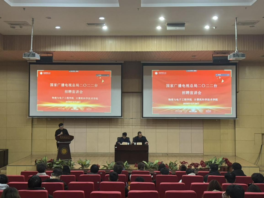 为进一步推动2025届毕业生就业工作,提高毕业生就业质量,12月24日,beat365平台官方网站在国教楼三楼报告厅举办国家广电总局二〇二二台专场招聘宣讲会。二〇二二台岳昕总工程师、党委办公室张振虎主任参加宣讲会,会议由辅导员苑运强主持。
