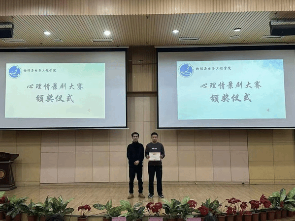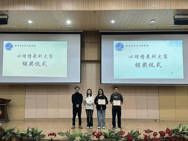 为深化心理健康教育内涵,创新思政育人形式,通过戏剧表演的形式,引导学生关注心理健康,传递积极向上的价值观,促进学生的全面发展。3月27日,beat365平台官方网站在国际教育大厦三楼报告厅举办“‘剧’焦青春,演绎成长”心理情景剧大赛。校党委学生工作部心理健康教育服务中心闫孟婕、学院心理健康专干范佳薇、辅导员周丽茹、研究生代表杨天奇担任评委,学生代表200余人参与。