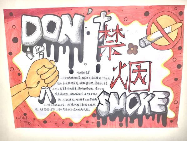 活动期间,同学们充分发挥自己的想象力与创造力,用五彩画笔在手抄报上展现对吸烟危害的深刻理解。有的同学以生动的绘画描绘吸烟对肺部的损害,有的同学用详实的数据揭示吸烟与疾病的关联,还有的同学书写充满感染力的标语倡导大家远离烟草。每份手抄报都紧扣主题,内容丰富,设计精美,充分体现了同学们对践行无缘校园的行动和对身心健康的重视程度。