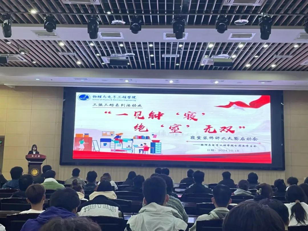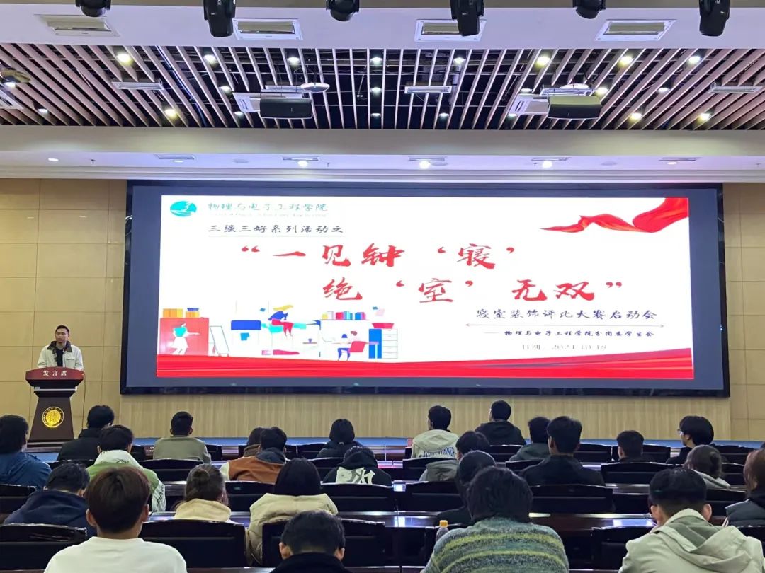 为落实立德树人根本任务,促进学风校风建设和精神文明建设,结合我校“三强三好”达标建设工作,为引导2024级同学参与到“三强三好”创建活动中,营造整洁舒适温馨的寝室环境,彰显青春朝气,展示寝室风采,beat365平台官方网站于10月18日晚在国教楼一楼报告厅召开第五届“一见钟‘寝’,绝‘室’无双”寝室装饰评比大赛启动会。