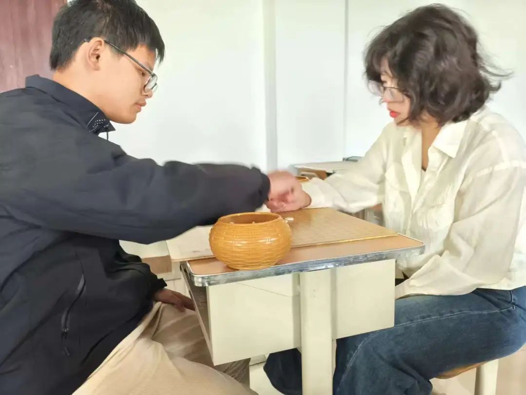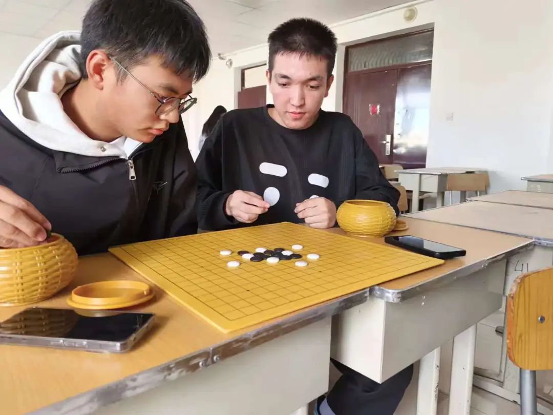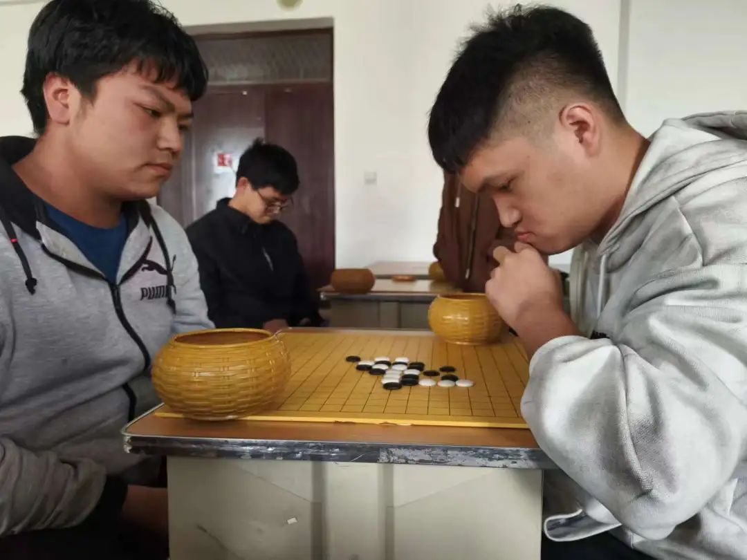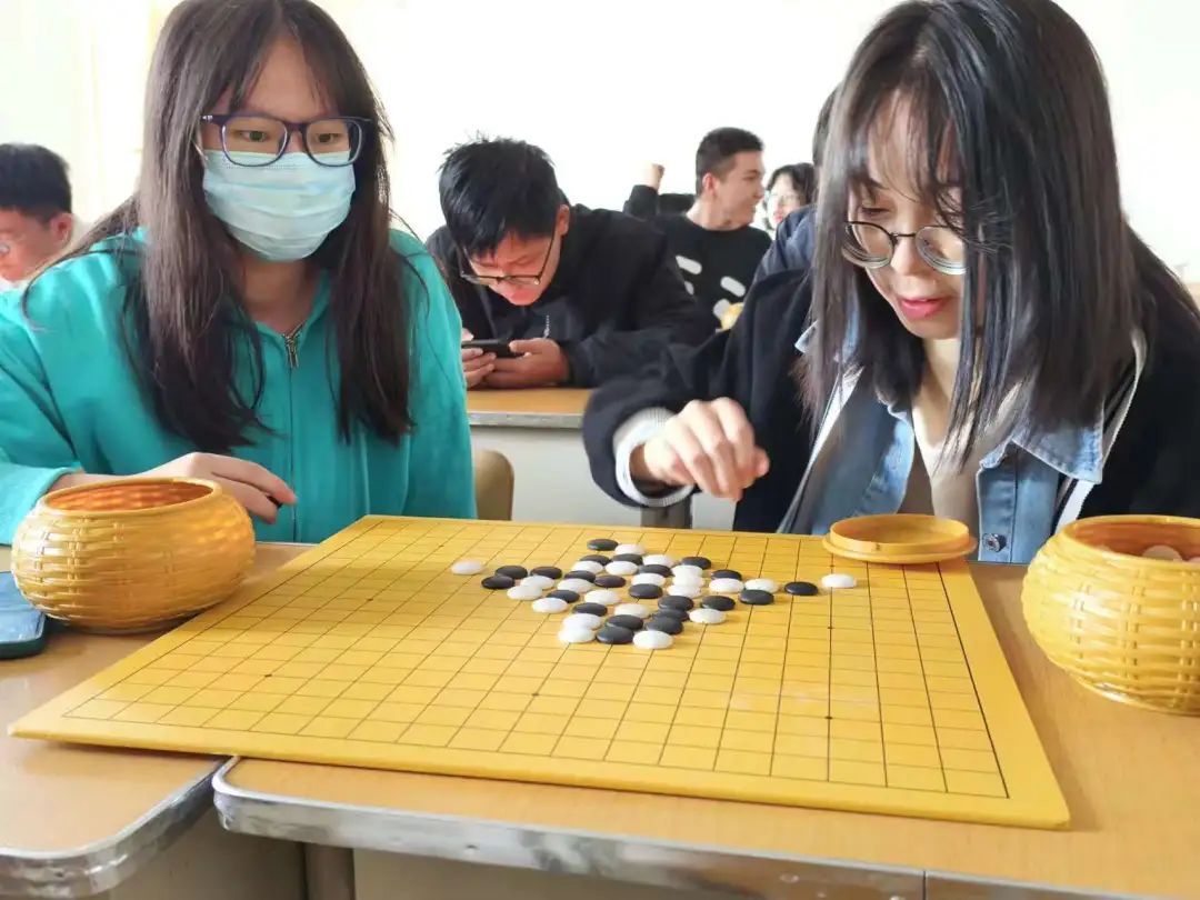 比赛现场,黑白交锋,同学们棋路清晰明了,攻守易势,运筹帷幄,空气中都弥漫着安静而又紧张的氛围,同学们在棋局面前镇定自若,思路敏捷、下手果断,各显“棋”招。