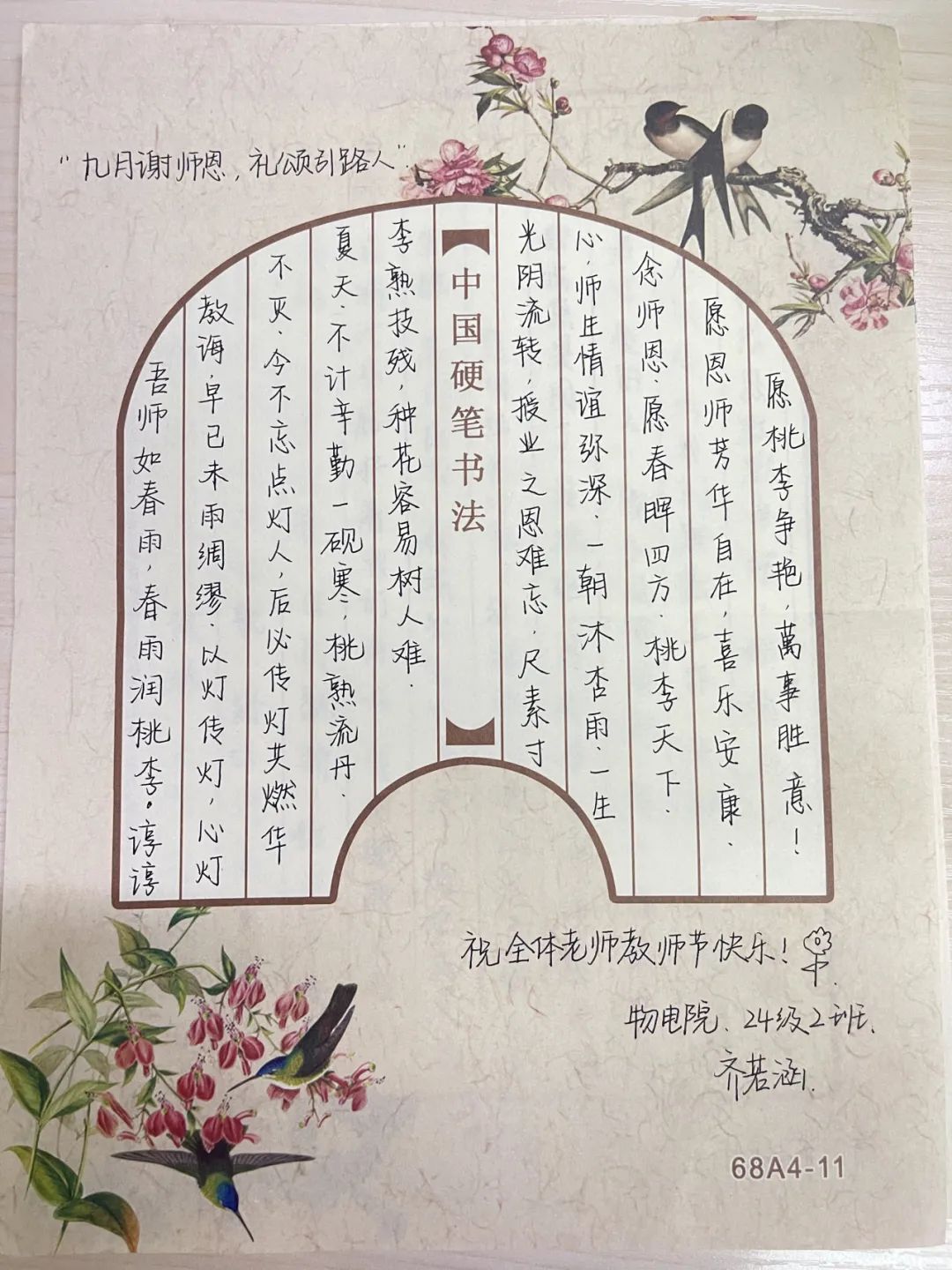 青春物语 | “三进两联一交友”系列活动——物电学子祝老师们教师节快乐