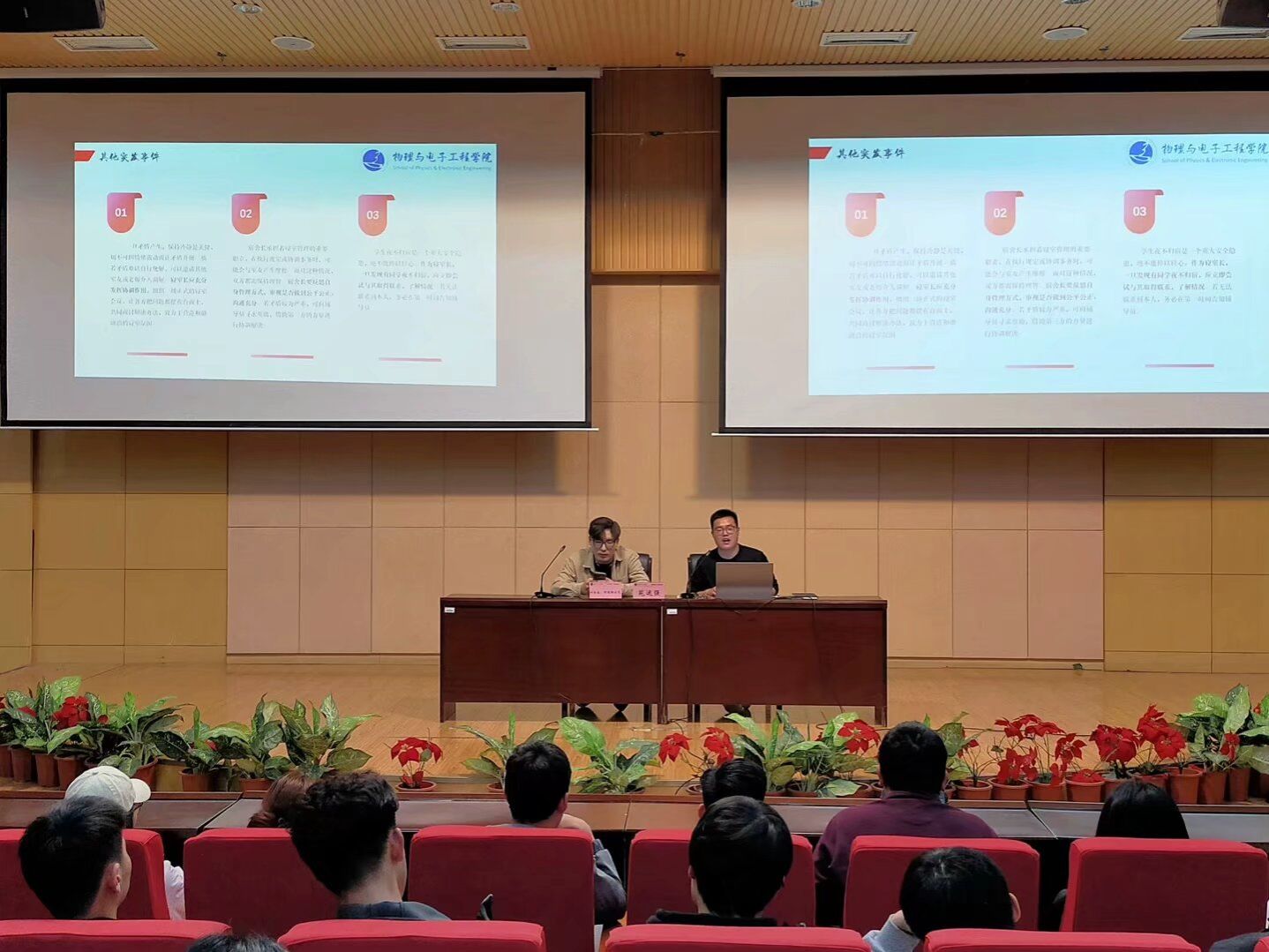为深入贯彻落实习近平总书记关于加强高校大学生思想政治工作和德智体美劳全面发展工作要求,进一步提升我院寝室长管理水平以及整体素质,强化寝室长业务培训,树牢校园安全意识,2025年4月9日20:00在国教楼三楼报告厅开展学生社区安全教育培训活动。会议由beat365平台官方网站2024级辅导员苑运强老师主讲,学院分团委副书记叶尔森·阿德勒别克主持,学院2024级、2023级、2022级全体寝室长参与。