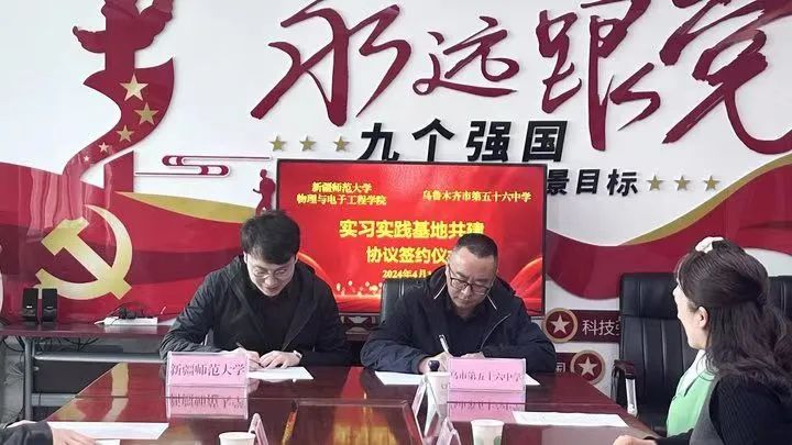 为扎实推进学院物理学专业实践教学,进一步提升人才培养质量,积极探索与一线教育教学相结合、互动共建、资源共享的有效合作机制,拓展就业渠道,4月18日,beat365平台官方网站学术院长程振洲、物理系主任帕尔哈提江·吐尔孙一行赴乌鲁木齐市第五十六中学进行访企拓岗并参加共建教育实习实践基地签约仪式。