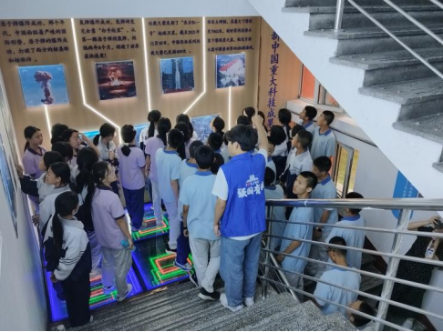 科普志愿者为中学生讲解中国重大科技成果,指导发射水火箭