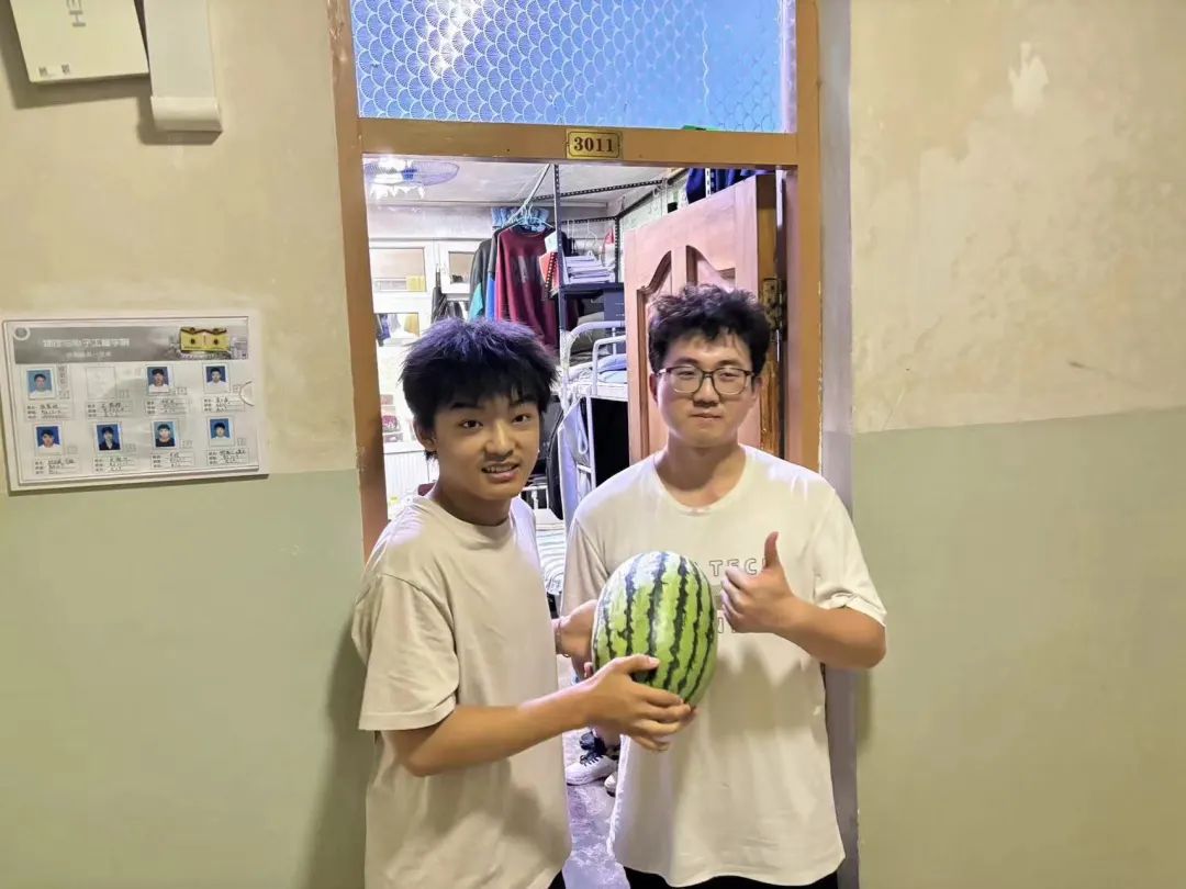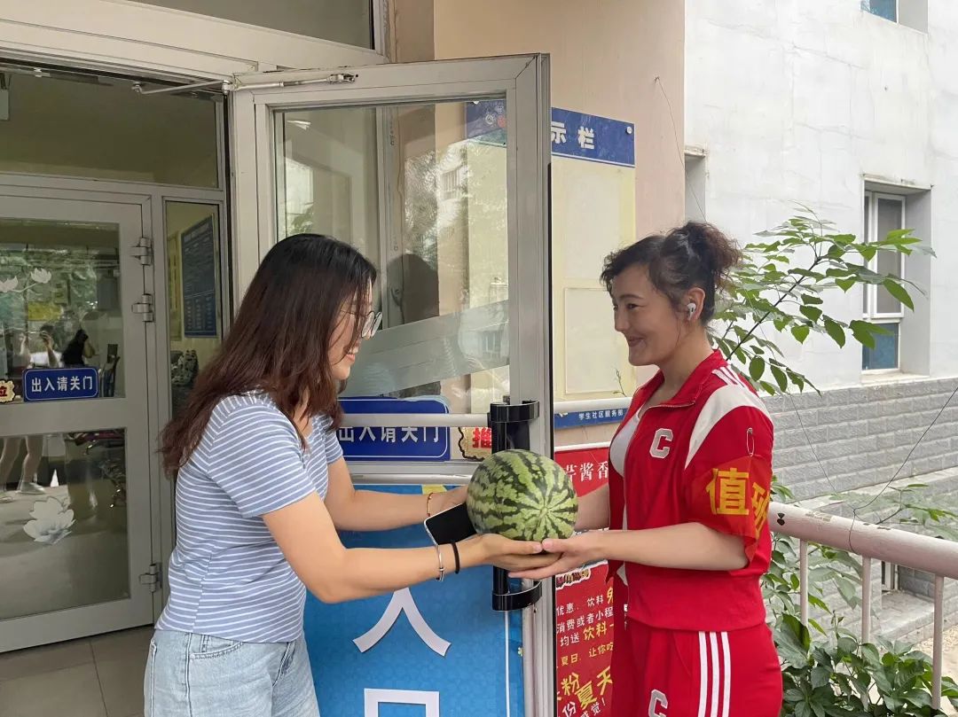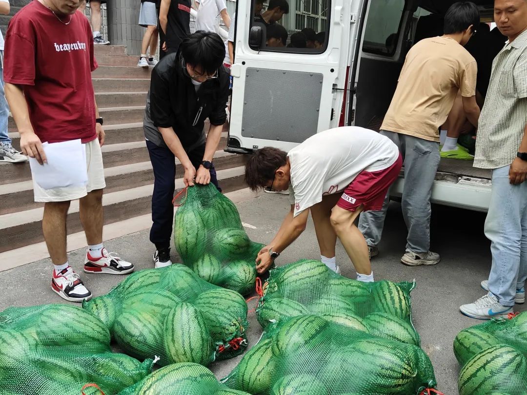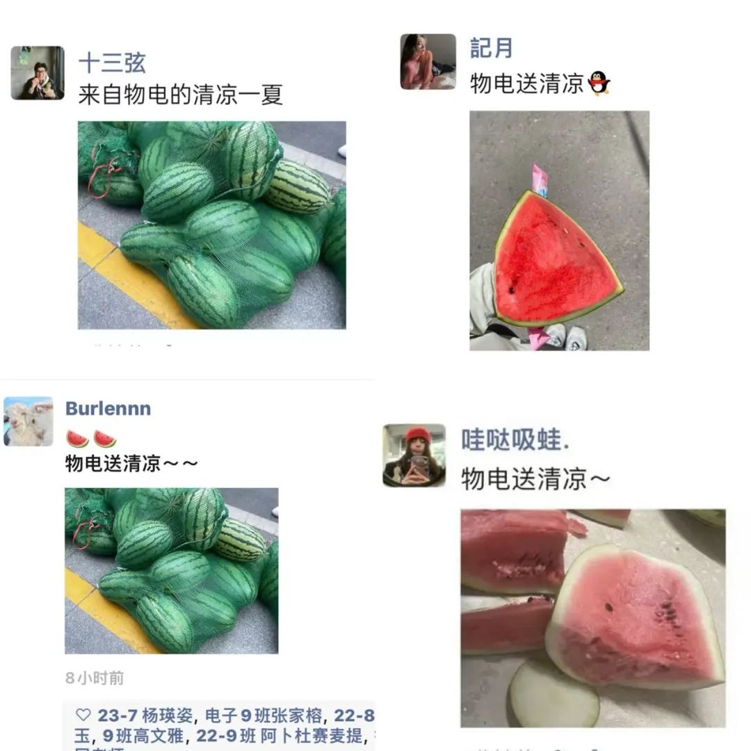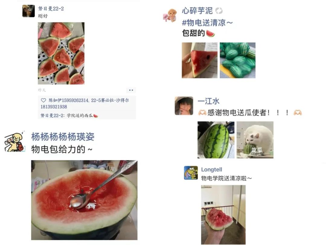 同学们纷纷围坐,品尝着这份独特的夏日清凉。大家边吃边聊,笑声、谈话声此起彼伏,充满了欢乐和温馨。在欢乐的气氛中,同学们诉说着对学院的感激之情以及归属感并表示西瓜使他们对期末备考有了更大的动力和信心。炎炎夏日送清凉,丝丝关爱入心田,这不仅仅是一个西瓜,更代表了学院对学生们热切的关怀。让每一位物电学子都能在紧张的学习之余,感受到学院的关怀。这份"清凉瓜宴"不仅让同学们在炎炎夏日中感受到了凉爽,更在无形中为大家加油打气,助力期末复习。同学们纷纷表示,这份特别的福利让他们感受到了学院的关爱和支持。