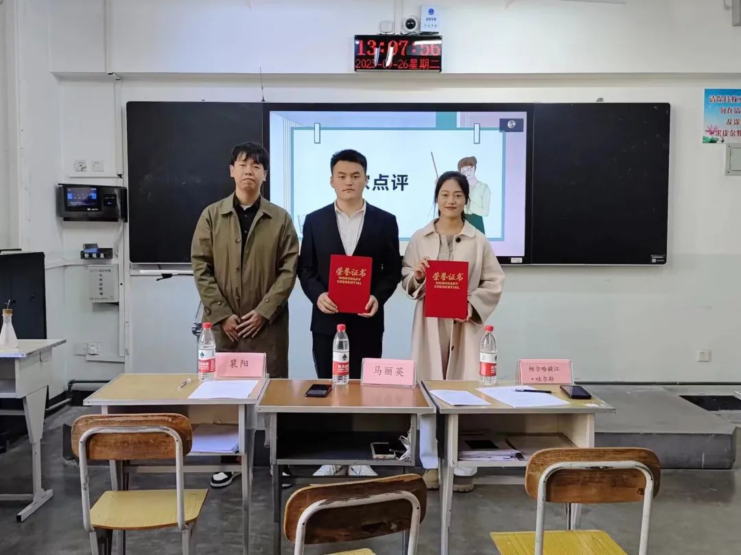 经评委打分,2020级何国铭、窦凤怡、王梓正三位同学荣获beat365平台官方网站“第三届新疆高校师范生教学技能大赛”院级选拔赛一等奖,2021级尹富豪等八名同学荣获二等奖,2021级金烨等八位同学荣获三等奖。获得一等奖的三位同学将代表beat365平台官方网站参加第三届新疆高校师范生教学技能大赛。