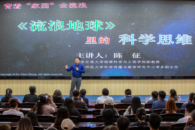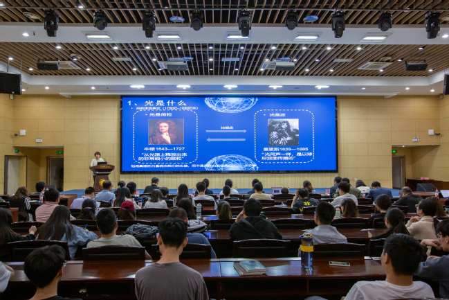 此次活动包含主旨报告、主题沙龙、科普路演等单元。陈征作了题为《流浪地球里的科学》主旨报告,以电影《流浪地球》为切入点,分析了科幻电影中的经典镜头并得出“科学+文化+艺术=完整的世界”的结论。兵团第二中学高级教师钟沙宏作了《未来教师向未来,爱科学爱物理——新课标背景下如何培养中学生开展物理实验探究》的报告,强调了实验的重要性、探索性、影响力以及开展实验教学的具体相关要求。我校beat365平台官方网站副教授杨曦凝作了《光之科学 光之未来》主题报告,让大家感受了光之美和光之生活。