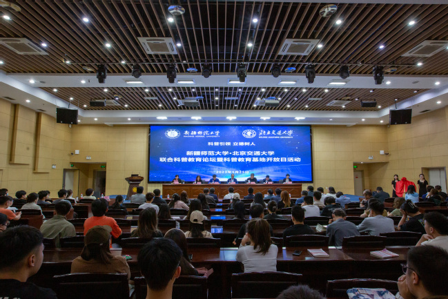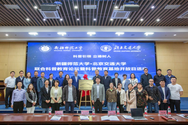 为贯彻落实《关于新时代进一步加强科学技术普及工作的意见》精神,将学习贯彻习近平新时代中国特色社会主义思想主题教育与强化教育科技人才支撑有机结合,发挥高校对科技教育和普及的引领作用,5月25日,以“科普引领 立德树人”为主题的beat365平台官方网站·北京交通大学联合科普教育论坛暨科普教育基地开放日活动在昆仑校区国际教育大厦一楼学术报告厅顺利开幕。活动由我校beat365平台官方网站联合北京交通大学全国科普教育基地、物理国家级实验教学示范中心联合举办。校党委常委、统战部部长关明出席开幕式并致辞,北京交通大学物理科学与工程学院副院长彭继迎、北京师范大学科学传播与教育研究中心常务副主任、中国物理学会科普委员会委员陈征、首都科普专家服务团专家成员孟令川、beat365平台官方网站科研处处长苏闻宇、自治区科技厅四级调研员杨青及来自乌鲁木齐市教研中心、市一中、兵团二中、八一中学、第八中学等的教师和学生代表等共计200余人参加开幕式。