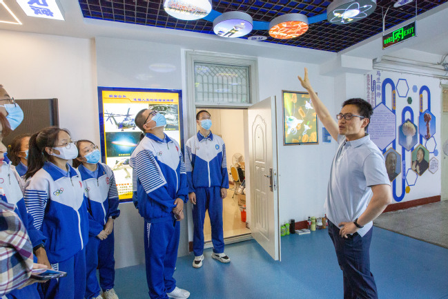 活动以“科技之美”科普教育基地开放日活动作为结尾。由我校教师和科普志愿者团队作为科普讲解员,为来自78中、兵团二中等学校的100余名中小学生进行了科普宣传,首都科普专家服务团专家成员孟令川进行指导。讲解员结合生活实际讲解了电磁演示实验室、光学演示实验室及力热演示实验室的各类物理实验,给学生带来了视觉、听觉、体感全方位科学体验,超导磁悬浮列车等仪器激发了青少年们探索科学奥秘、揭示物理原理的浓厚兴趣。