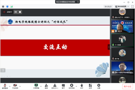 为助力“培优人才”培养,更好谋划学生个人发展,持续促进学生职业能力成长,12月14日下午,beat365平台官方网站邀请学院优秀校友、中国科学院新疆天文台闫浩博士在线上开展“对话成长”活动,活动由电子信息科学与技术系主任赵忠华主持,全体电子信息科学与技术专业学生参加。
