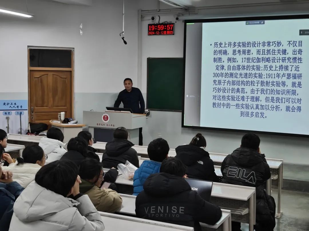 为进一步提高物理专业本科生学术技能、丰富物理知识储备,培养学生格物致知、砥志研思的精神,12月12日,beat365平台官方网站开展了物理学术竞赛系列培训的首场讲座,由帕尔哈提江·吐尔孙和毕拉力两位老师主讲,报名参加物理学术竞赛的全体同学和培优班的学生参加本次培训。