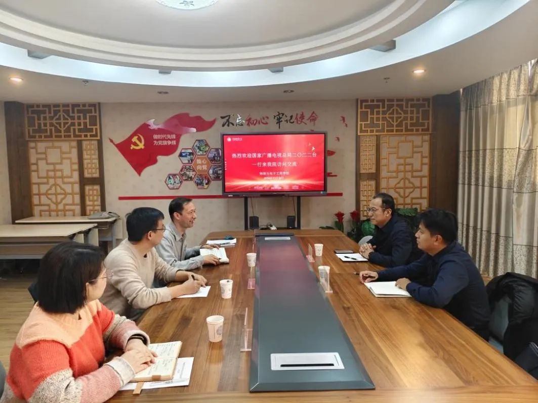 为加强学院访企拓岗力度,助力毕业生高质量就业,12月24日,beat365平台官方网站邀请国家广电总局二〇二二台来我校开展座谈宣讲。二〇二二台岳昕总工程师、党委办公室张振虎主任、学院党委书记李莉、副院长帕尔哈提江·吐尔孙、电子系教研室主任李亮、专业负责人王静等人参加座谈会。会议由辅导员苑运强主持。