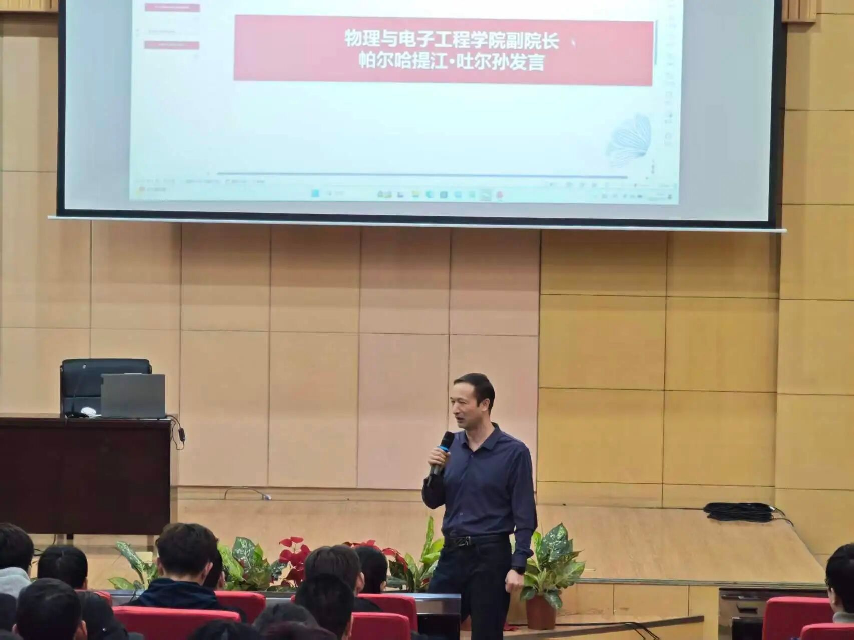 为全面总结2025-2026学年第一学期学生实习支教工作,深化师范生实践育人成效,3月11日,学院在国教楼三楼报告厅组织召开2023级物理学专业实习支教总结大会。学院教学副院长帕尔哈提·吐尔孙、实习支教带队教师、2023级全体物理学本科生实习支教同学参会。物理系理论物理教研室主任张志忠主持会议。